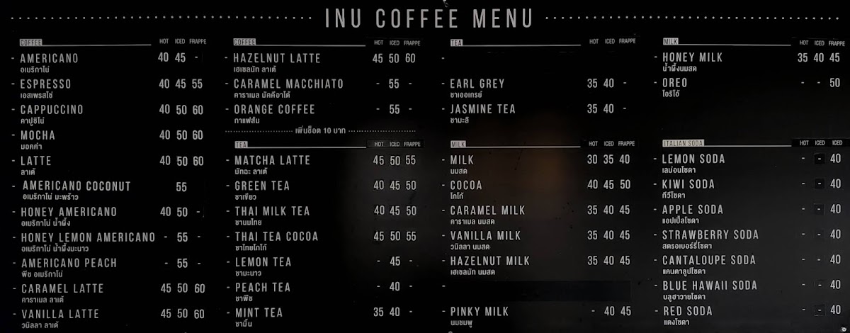 Welcome to INU COFFEE, a hidden gem located at 4 9 Mahidol Rd, Chiang Mai. This quaint cafe invites you to indulge in a delightful array of coffee offerings at prices that won't break the bank. Customers rave about the iced latte, which is a steal at just 45 baht, showcasing the cafe's commitment to quality and affordability.
